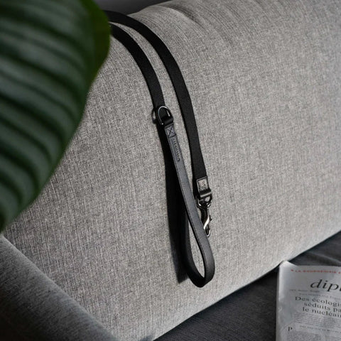 Conçue par un studio scandinave, cette laisse associe un cuir tanné végétal et des sangles en PET recyclé résistantes pour un mélange parfait de fonction et de style. Fabriquée à partir des meilleurs matériaux, cette laisse se distingue par son cuir pleine fleur, à la fois souple et résistant, dans la poignée, et par ses accessoires sophistiqués en laiton massif gris foncé.