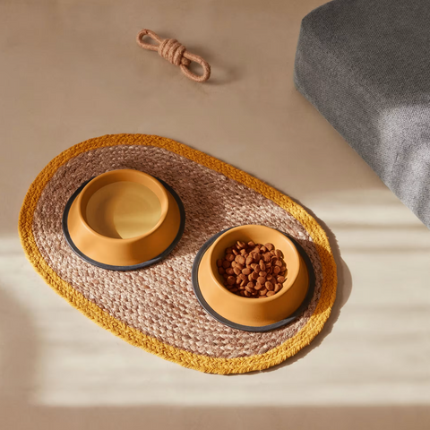 Donnez faim à votre chien grâce à ce lot de deux grandes gamelles moutarde en acier inoxydable. Avec sa base en caoutchouc antidérapant, fini les gamelles qui glissent sur le sol. Tous les objets—même ceux de votre chien peuvent avoir du style. Jusqu'à la gamelle.